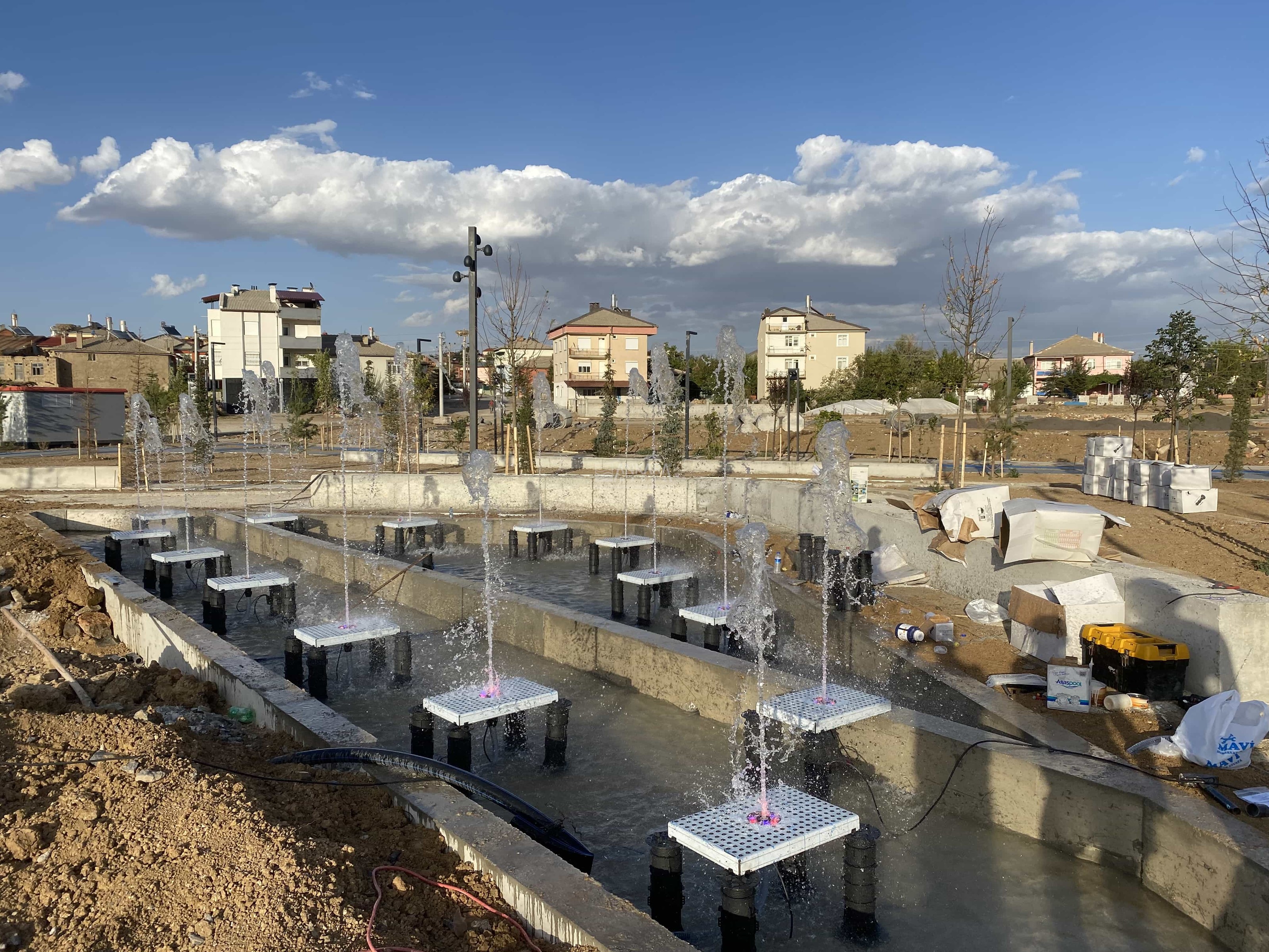 Izgaralarla güvenli bir hale getirilen, çeşitli nozullar ve kolektörlerle oluşturulan kuru havuzlar gündüz serinletici bir etkiye sahipken kava karardığında ise su ve ışık oyunlarıyla seyri keyif verecek bir şölene dönüşmektedir.